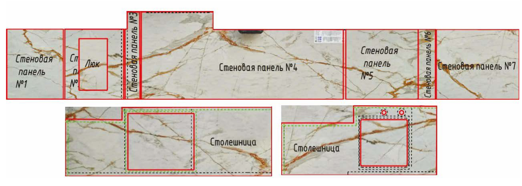 Лист камня фотографируется, на фото накладывается чертеж будущего изделия, чтобы были видны переходы декора, а также чтобы они были плавными и гармоничными, подчеркивали красоту материала.